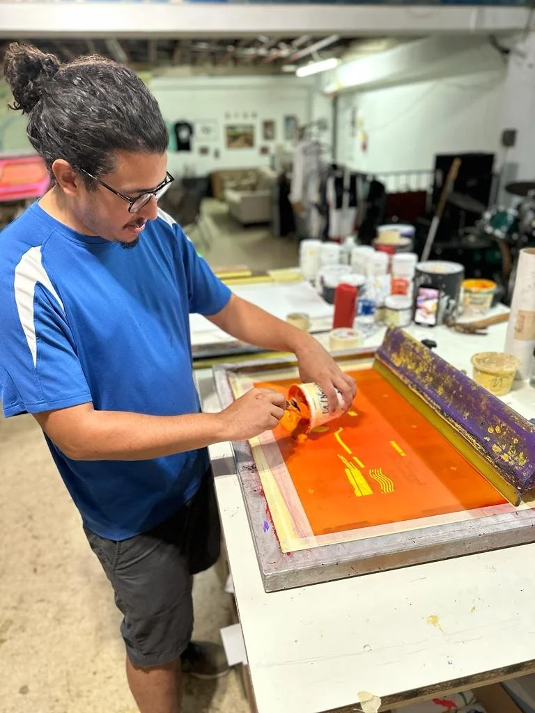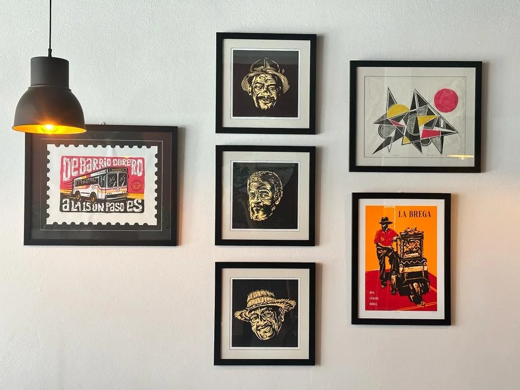 Colección La Santurcina es una serie de seis piezas en serigrafía que diseñamos e imprimimos para el restaurante y pizzería La Santurcina localizados en la Ponce de León en Santurce, inspirados en los salseros oriundos del barrio, la musicalidad de la salsa, los personajes de a diario, las formas y colores de Santurce.